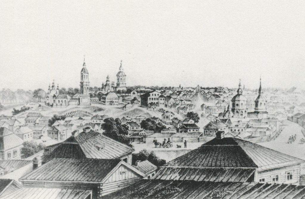 С момента своего рождения в 1604 году и до начала XIX века Томск был городом деревянным. Все городские постройки и сооружения возводились из местного материала, которым была богата сибирская земля – из дерева. Лиственница и сосна, напоенные дождями, солнцем и обласканные ветром, продолжали свою жизнь в янтарных срубах, позже посеребренных временем, щедро отдавая свое тепло и накопленную мощь людям. Зимой в них было тепло, а летом прохладно. Деревянные строения, поднимаясь в гору и сбегая вниз, были в ладу с живописным природным ландшафтом. На их фоне величественно возвышались островерхие деревянные храмы. Эта гармония запечатлена в рисунках и гравюрах местных и приезжих художников. В 1804 году, когда Томск стал административным центром Томской губернии, в городе было только 3 каменных здания. Лишь в середине XIX века появляется все больше каменных построек, но деревянное строительство не прекращается.