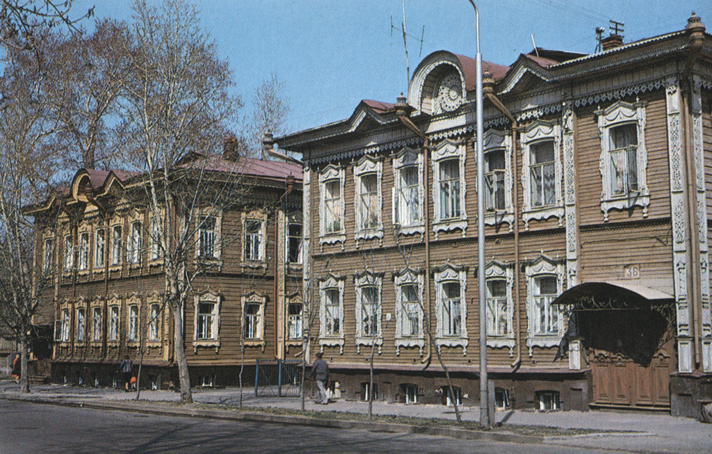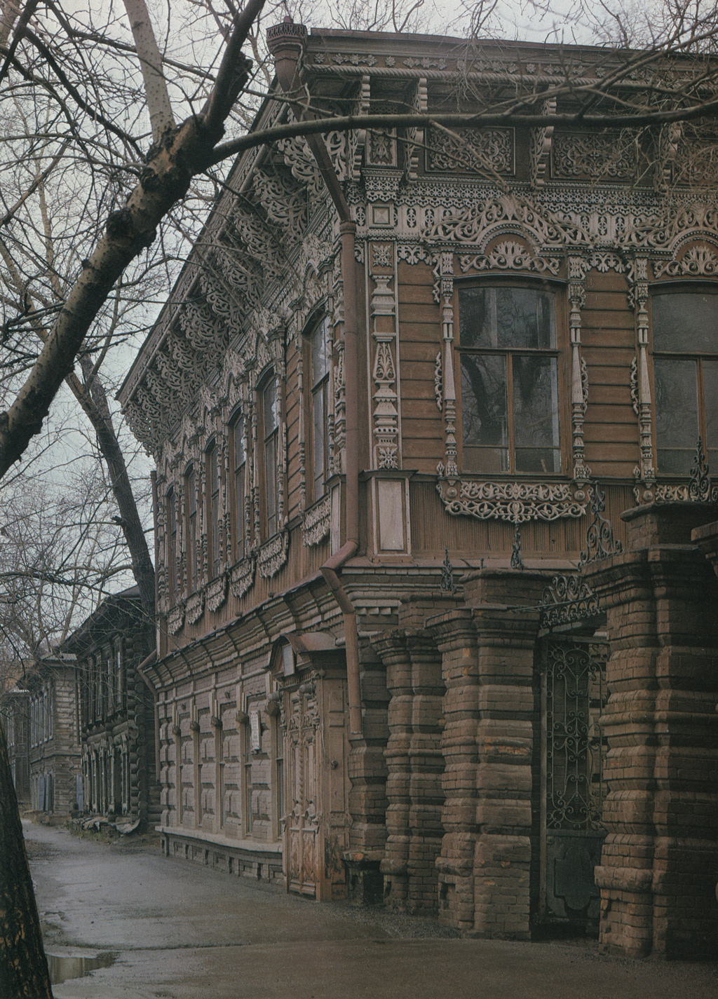 Деревянный Томск периода эклектики (конца XIX – начала XX столетия) выглядит совсем иначе. Фасады домов, выходящие на красную линию улиц, становятся более протяженными и высокими, количество окон и их размеры увеличиваются, что удивительно для сурового климата Сибири.