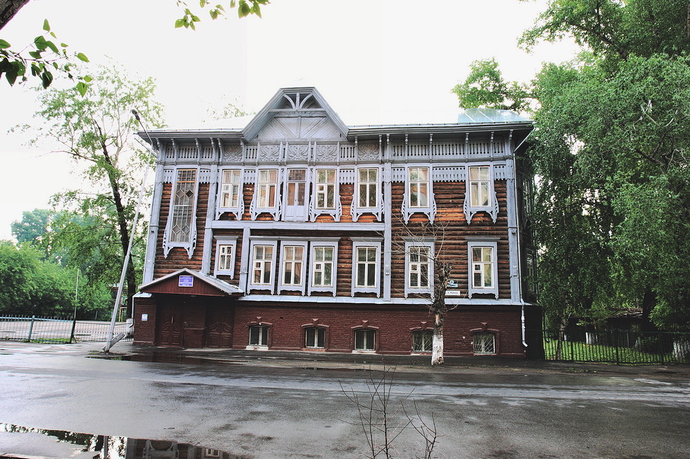 Двухэтажный деревянный особняк на высоком кирпичном цоколе по улице Карла Маркса (тогда Духовской) был построен в 1913 году архитектором Петром Федоровичем Федоровским для купца и общественного деятеля, потомственного почетного гражданина Томска Николая Доримедонтовича Родюкова (1852-1920).