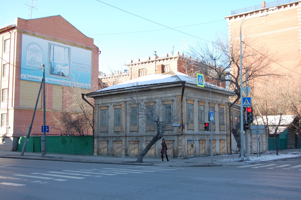 Усадьба, построенная в конце XIX – начале XX века на пересечении ул. Челюскинцев (бывшей Иркутской) и Хохрякова (бывшей Успенской), принадлежала одному из сыновей тюменского купца первой гильдии Петра Григорьевича Ядрышникова – Михаилу Петровичу. Хозяйство включает деревянные жилой дом, забор, ворота и амбар по линии ул. Хохрякова.