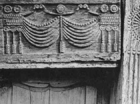 Прежде в состав усадьбы входили также ворота и забор, ныне утраченные. В их оформлении наиболее ярко проявилась творческая самостоятельность мастеров-резчиков, легко отступающих от канонов ордерной архитектуры. Так, например, вместо традиционных капителей на опорных столбах ворот, обработанных под каннелированные (желобчатые) пилястры, использованы солнечные розетки, окаймленные изогнутыми лучами. Не менее оригинально реализован и мотив «занавеса с кистями»: выполненное на его основе резное украшение надвратной доски является достаточно сложным по рисунку и пластике (в изображение многоскладчатой драпировки с длинными витыми шнурами и крупными колосовидными кистями вписаны другие классицистические и барочные элементы декора, такие как розетки и волюты).
