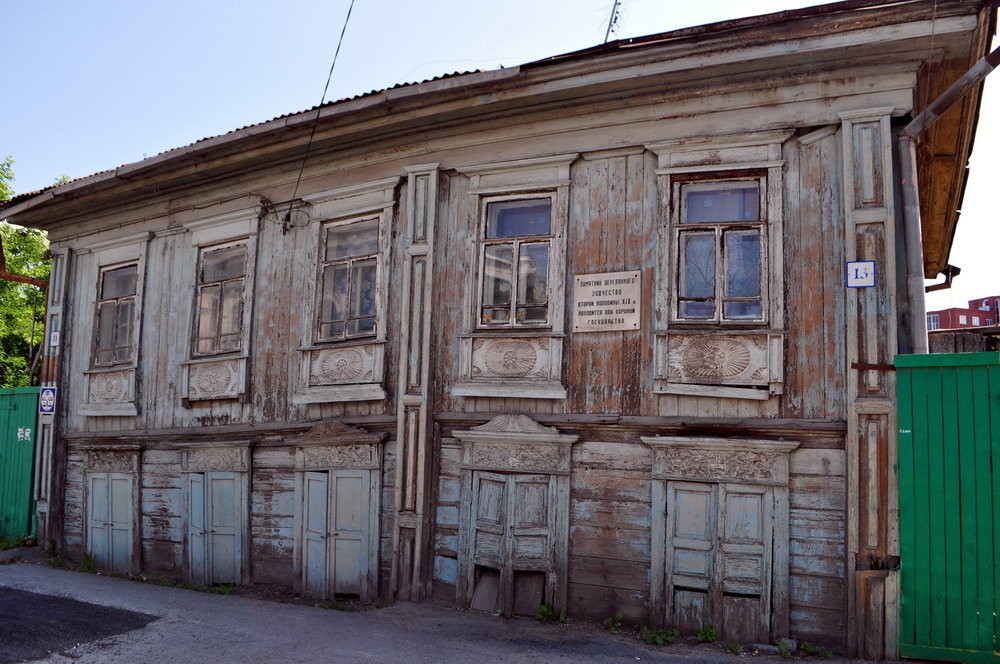 Небольшой деревянный двухэтажный дом-пятистенок, расположенный на ул. Челюскинцев (бывшей Иркутской), представляет собой типичный для Тюмени образец мещанской постройки, при этом являясь одним старейших сохранившихся в городе деревянных зданий (датируется 1854 годом).